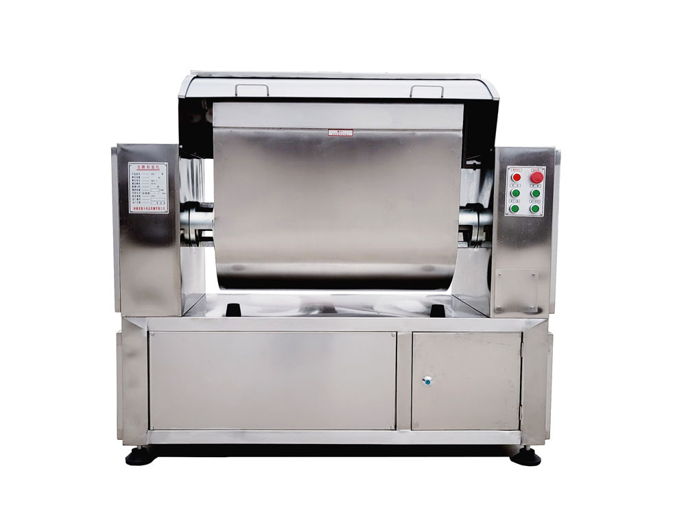 →新型臥式不銹鋼(攪拌)和面機  →型號12.5/25/50/75/100/150/200型  →功能  適合攪拌各種韌性面團。以制作饅頭、餃子、餛飩、包子皮等。更換攪拌器,還可和制作酥性面團,以制作各類糕點、湯圓、餅干以及各種餡料?! ⊥瑫r還適用于化工醫(yī)藥等行業(yè)中的同類作業(yè)。是部隊、機關(guān)、學(xué)校、酒店、廠礦、食堂可選產(chǎn)品。  →特色  1、和面機采用花籃式軸套設(shè)計,有效防止面團受到污染,進一  步提高食品安全?! ?、面斗可90度下翻,輕松將攪拌好的面團自動排出,節(jié)省勞動力?! ?、設(shè)備配備安全防護裝置,開蓋自動停機,確保操作人員安全?! ?、整機結(jié)構(gòu)美觀大方,操作方便,噪音小,性能穩(wěn)定可靠?!  饕夹g(shù)參數(shù)產(chǎn)品型號額定容量(kg)攪拌轉(zhuǎn)速(rpm)主電機(kw)副電機(kw)外形尺寸(長×寬×高)HWH12.5型12.5261.5640×440×725HWH25型25302.2816×437×1050HWH 50型50263.750.551326×632×1350HWH 75型75263.750.551427×632×1310HWH100型100263.750.551527×632×1310HWH150型150257.51.51664×822×1620HWH200型20021112.21864×822×1620板式刮底攪槳葉花環(huán)攪拌器